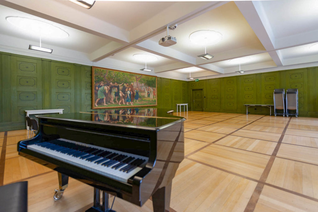 Der grüne Saal wird regelmässig für Schulungen, Vorträge, Plenarsitzungen, Kurse und kleinere Konzerte genutzt. Der historische, warm-grüne Kassettentäfer und der Berner Parkett verleihen dem Raum ein gediegenes Ambiente. Der Raum ist mit moderner Bild-, Ton- und Kommunikationstechnik ausgerüstet und kann auf Wunsch gezielt eingerichtet werden.