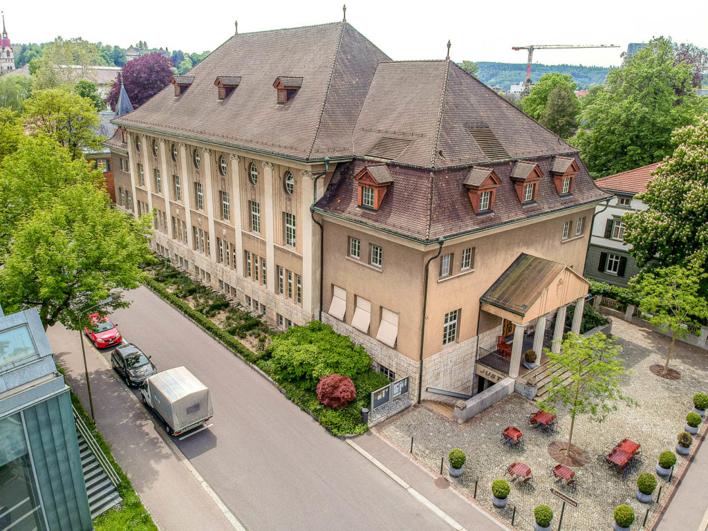 Im Innern des Gebäudes laden Foyer, Grüner Saal, Festsaal, Mehrzwecksaal, Seminarräume und Sitzungszimmer zum Verweilen und Bleiben ein. Der grosse, zweigeschossige Festsaal dominiert das Gebäude. Er ist von einer Kassettendecke überspannt und in seiner Farbigkeit noch heute erhalten. Die imposante, denkmalgeschützte pneumatische Orgel, eine der letzten dieser Art in der Schweiz, wird von namhaften Organisten, beispielsweise im Rahmen des Orgelfestivals, gespielt.